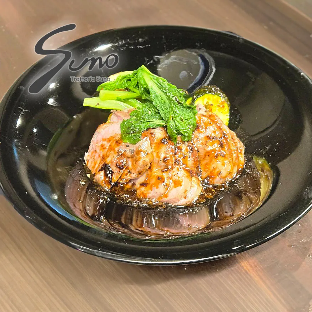 しっとりとした旨みのある肉質に、季節の産直野菜を合わせました。